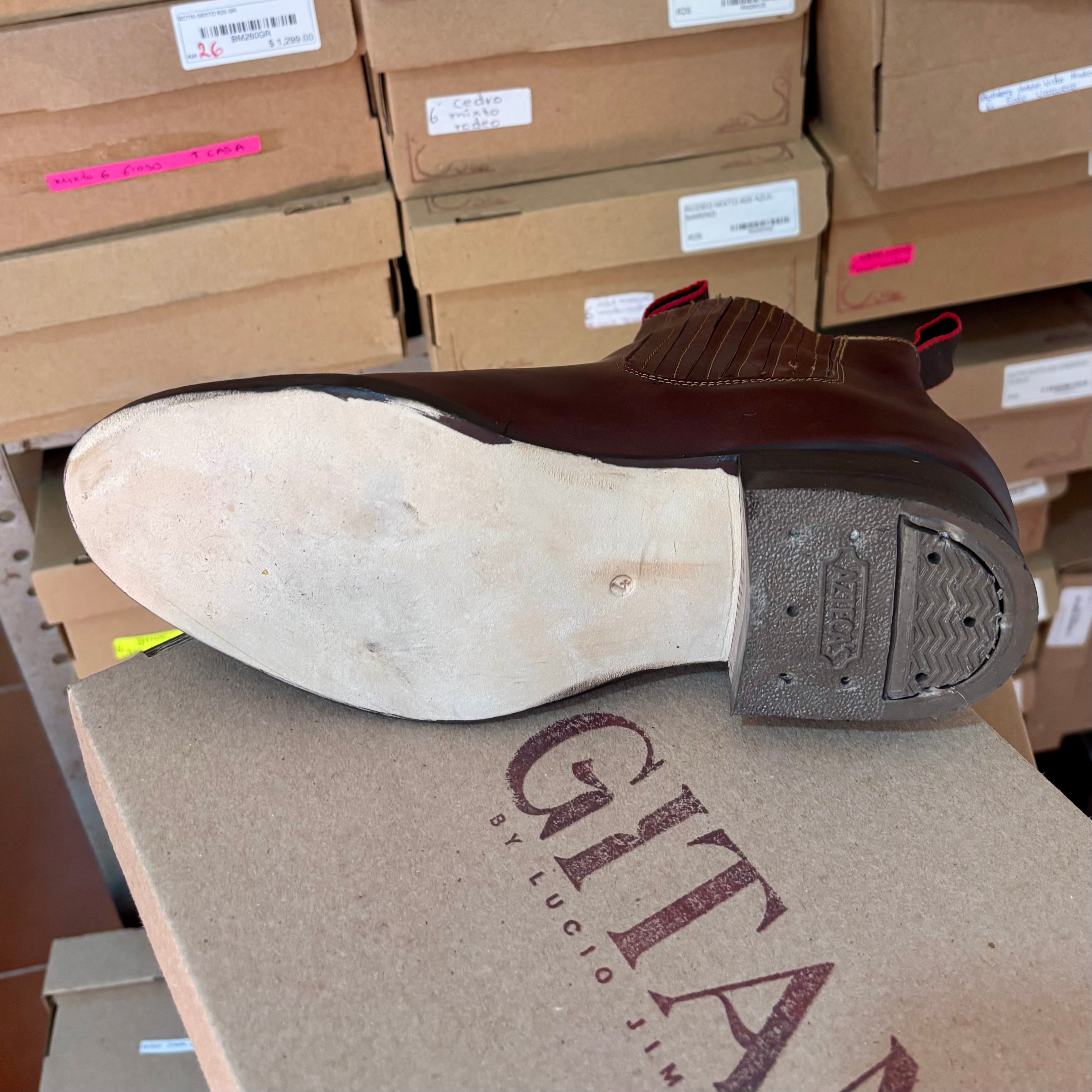 Cuenta con suela de cuero, ideal para no atorarse al montar y ofrecer una excelente resistencia y durabilidad.