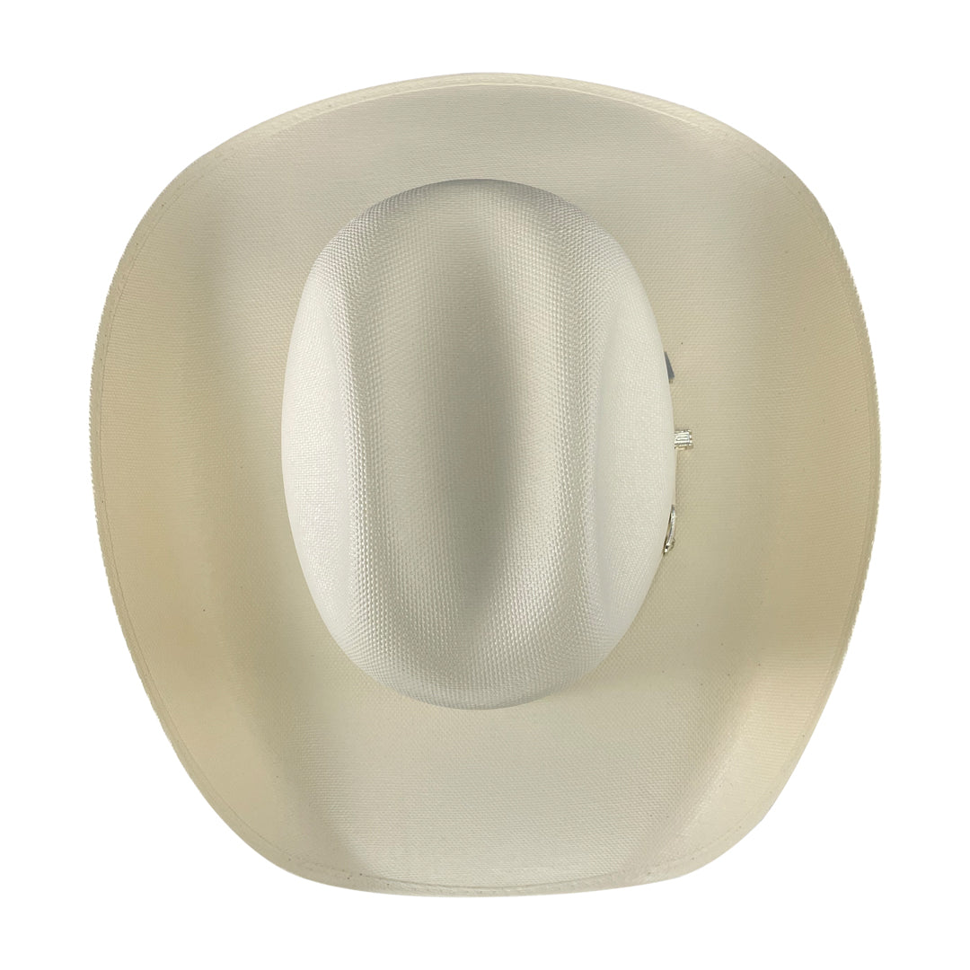 El sombrero Este Oeste de la marca Tombstone cuenta con una toquilla de cuero, y con falda de 10.5 cm y la medida de su copa es de 11 cm, en el interior cuenta con un tafilete sintético con un diseño especial y único de la horma.