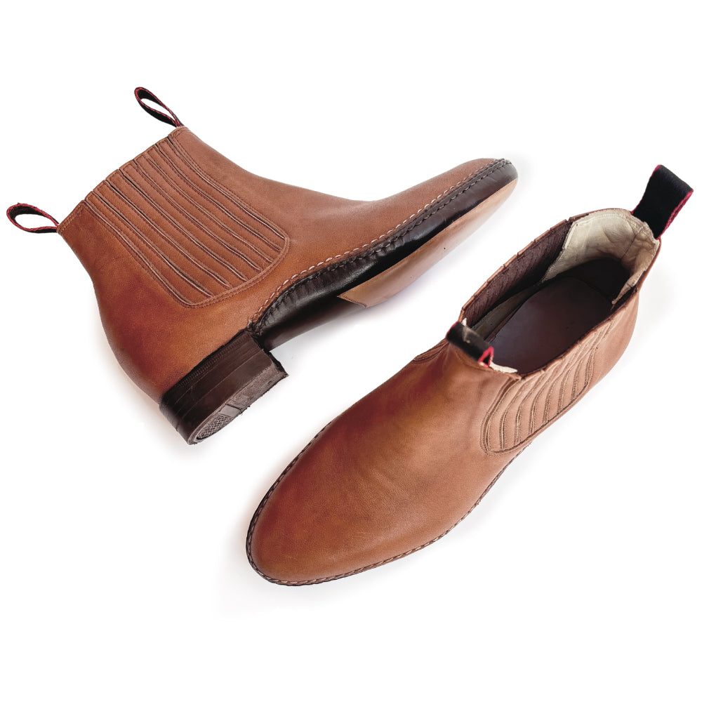 • Suela: Vaqueta natural, diseñada para proporcionar comodidad y resistencia en cada paso. Cosida y unida a mano a la piel del botín.